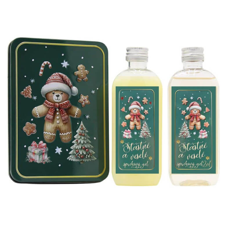 Vánoční dárková sada v plechovém boxu - 2x sprchový gel 100 ml - medvídek. Přeneste se zpět do dětských let, kdy Vánoce voněly cukrovinkami a radostí. Tato dárková sada s motivem roztomilého médi v zimní čepici v sobě skrývá teplo, lásku a útulnou atmosféru svátků. V elegantním plechovém boxu naleznete dva sprchové gely s vůní jablka a skořice (2×100 ml), které přemění běžnou sprchu na malý rituál pohody. Vůně gelů je jemná, příjemná a vhodná ke každodennímu použití - pokožku šetrně čistí, zanechává ji hladkou a hebkou. Tato sada je ideálním dárkem pro maminku, sestru, babičku, kamarádku nebo kohokoli, kdo má rád hřejivé a osobní dárky. Samotný box je zdoben krásným zimním motivem a po použití kosmetiky jej můžete využít k uchování drobných pokladů, listů, sušenek nebo ozdob. Souprava Méďa je symbolem klidu, domova a lásky - přesně takových, jaké si přejeme na Vánoce. Darujte vůni, která zahřeje srdce a vykouzlí úsměv - protože někdy je největší radost ukryta v těch nejmenších dárcích.